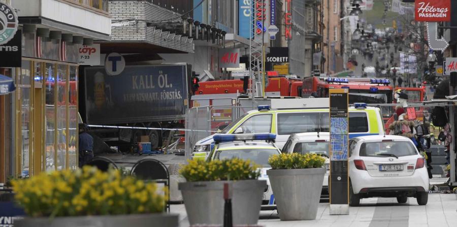Cuatro personas murieron y quince resultaron heridas este viernes en Estocolmo después de que un camión irrumpiera en una zona peatonal del centro de la ciudad, un ataque que las autoridades investigan como un atentado terrorista y por el que fue detenida una persona.