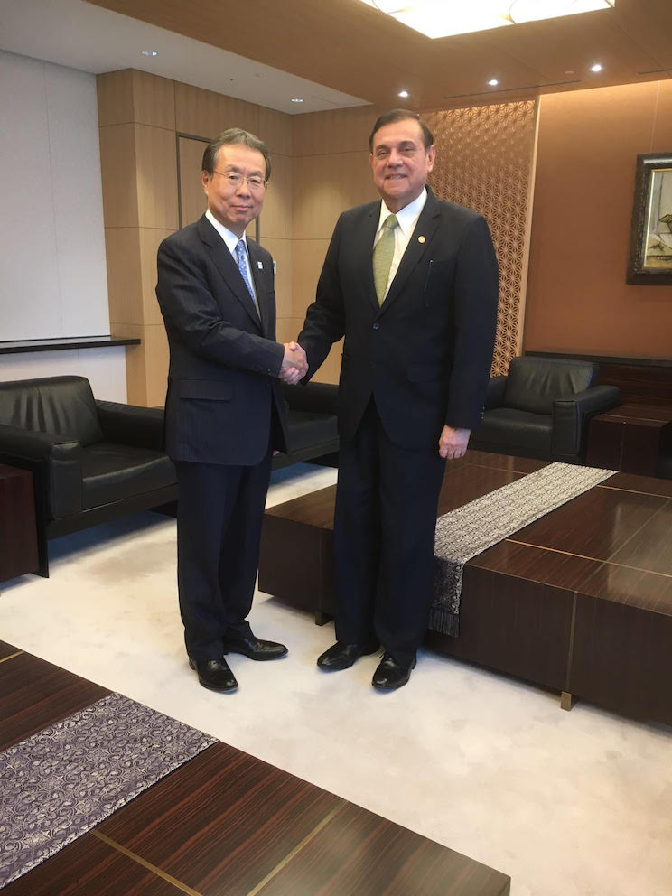 El embajador de Nicaragua en Japón, compañero Saúl Arana, fue recibido por el presidente del Banco Mizuho de Japón, Nobuhide Hayashi, y sus principales ejecutivos, Teramoto y Shiwaku San, quienes manejan las carteras de asuntos globales internacionales de la entidad bancaria.