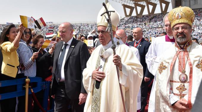 En una multitudinaria Misa en su segundo y último día de visita a Egipto, el Papa Francisco invitó a los fieles romper la dureza de corazón y no tener miedo a amar al otro, aunque sea enemigo.