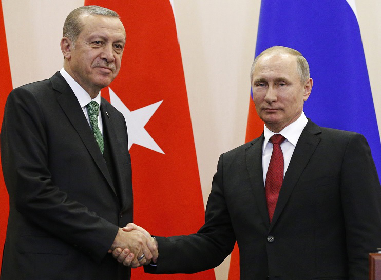 El presidente ruso, Vladímir Putin, y su homólogo turco, Recep Tayyip Erdogan, ofrecen una rueda de prensa tras haber mantenido una conversación en la ciudad rusa de Sochi, en la que abordaron un amplio abanico de cuestiones, incluido el proyecto del gasoducto Turkish Stream, la lucha contra el terrorismo, la situación en Siria y el suministro del sistema de defensa antimisiles ruso S-400 a Turquía.