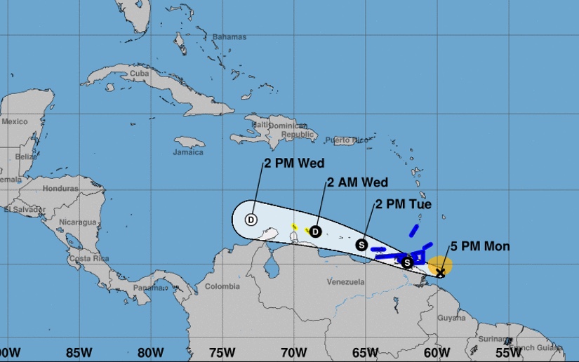 La tormenta se ubica a 200 kilómetros al Sureste de Trinidad y 365 kilómetros al Sureste de Grenada.
