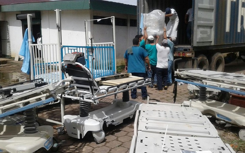 Entre los más de 600 paquetes y equipos que llegaron en un furgón vía terrestre, se encuentran laringoscopios, laparascopios, instrumentos de rayos X, camas, colchones, cunas, sillas de ruedas, collares cervicales, entre otros.