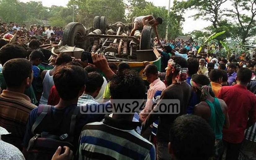 El accidente se produjo hacia las 05:00, hora local (23:00 GMT del viernes), cuando el camión proveniente de Gazipur, en las proximidades de Dacca en el centro del país, volcó en el distrito de Rangpur, afirmó a Efe el jefe de la Policía local, Mizanur Rahman.
