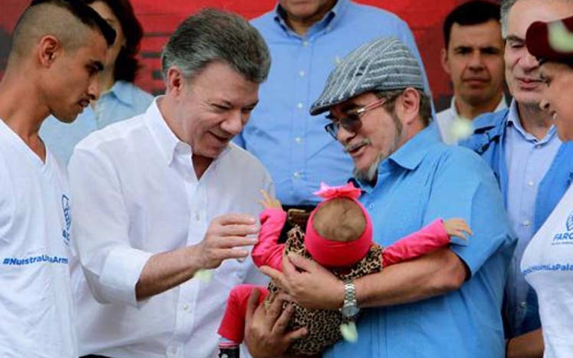 El presidente de la República, Juan Manuel Santos; y el líder de las FARC-EP, Timoleón Jiménez, coincidieron hoy en que en el futuro las armas serán cambiadas por la palabra en el accionar político colombiano.