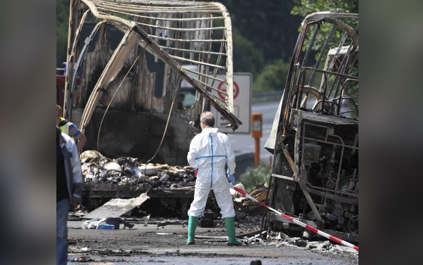 Las autoridades dijeron que los especialistas forenses de la policía federal estaban por llegar al sitio para retirar e identificar los cadáveres que quedaron en el vehículo carbonizado. La portavoz de la policía Irene Brandenstein dijo que el trabajo estaba siendo lento y laborioso, dado el daño causado al autobús por el fuego.
