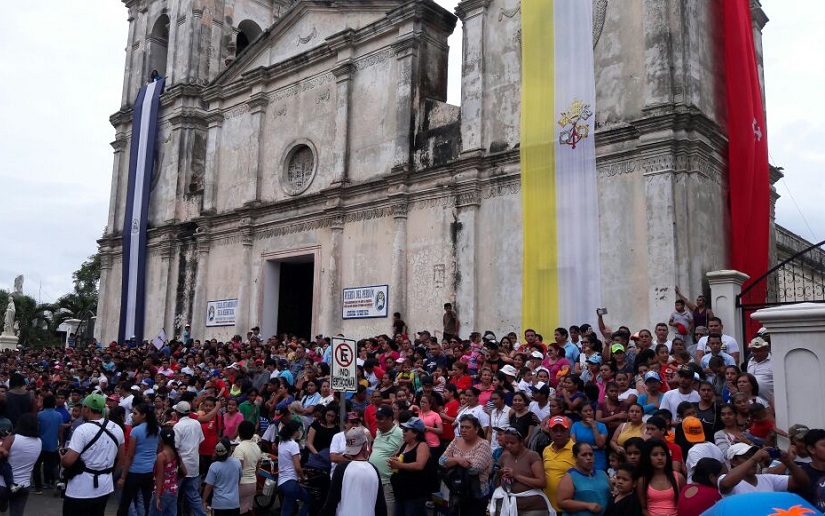 Después de 15 días peregrinando por las comunidades y montañas de Carazo, "Santiaguito" entra triunfal a la parroquia Santiago de Jinotepe, acompañado de sus fieles demandantes y entonando el "El Alabado".