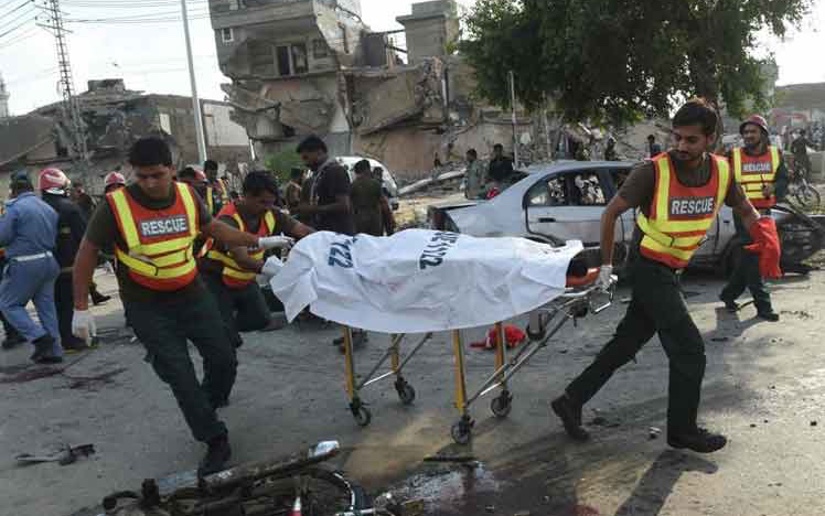 Miembros de ese cuerpo realizaban una operación de demolición de viviendas ilegales cuando un motociclista cargado de explosivos se lanzó contra ellos, explicaron fuentes de seguridad al canal Geo News.