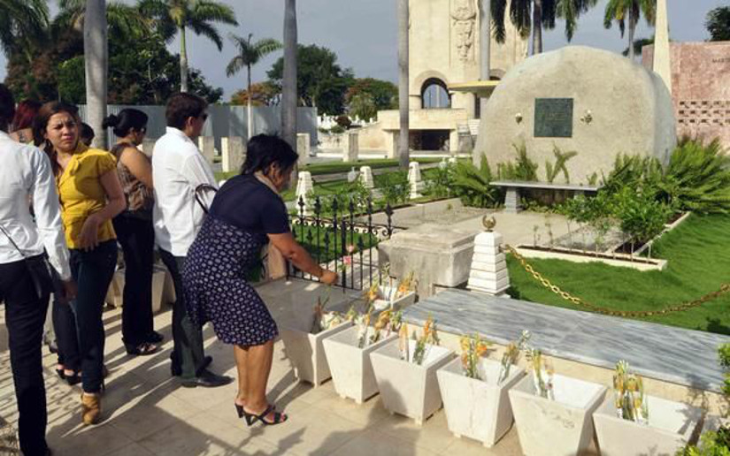 Flores blancas y rojas, fundamentalmente, fueron depositadas con amor y respeto ante el monolito que atesora sus cenizas, en un emotivo homenaje para honrar al artífice de la Revolución cubana y una de las más importantes personalidades de la historia.