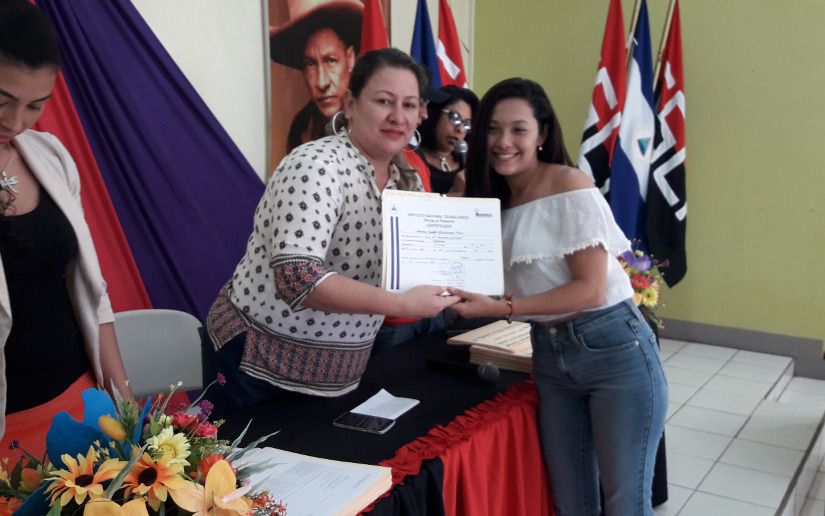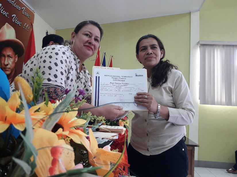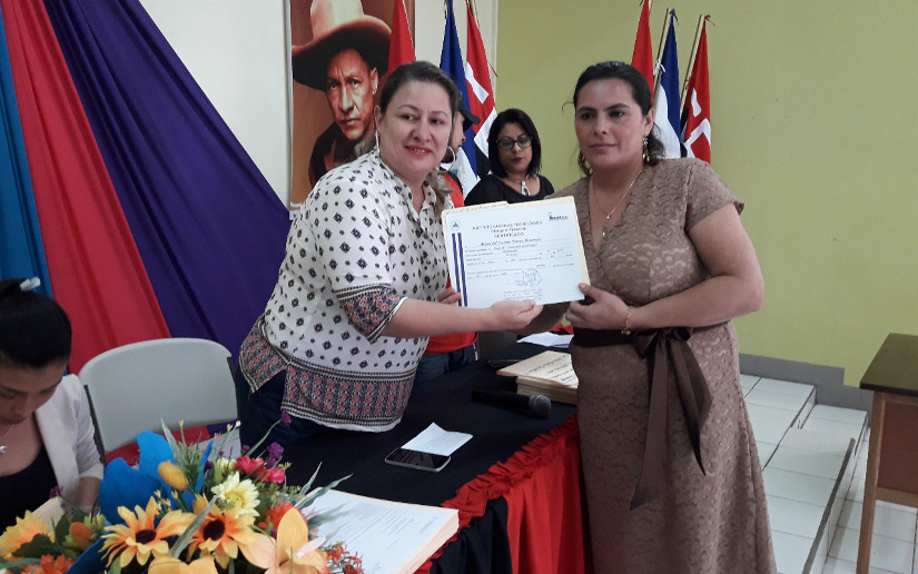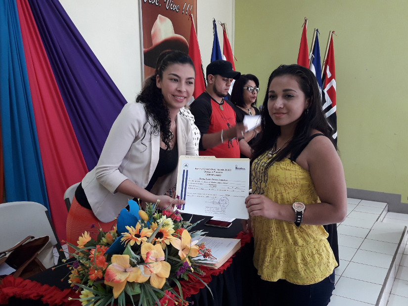 Jóvenes y adultos protagonistas de la Escuela de Oficios julio López Montenegro, de Jinotega, recibieron sus certificados como egresados después de recibir de manera gratuita diferentes cursos como manicure, pedicure, barbería, belleza, manualidades y computación básica, de igual manera egresaron protagonistas en cursos nuevos como decoración de eventos y repuje de Aluminio.