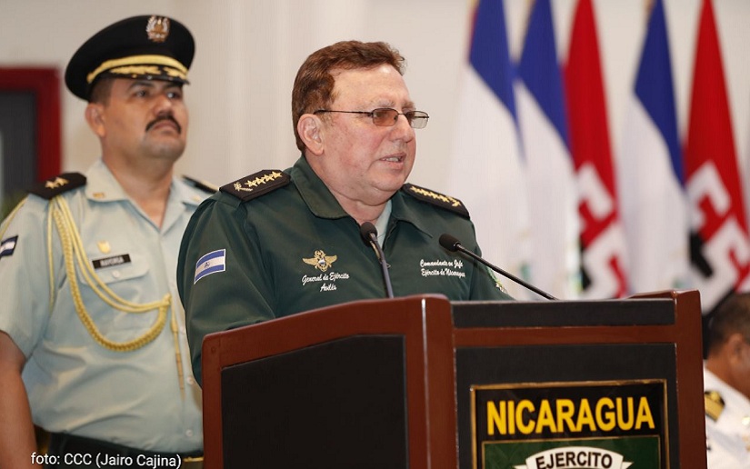 Comandante Daniel Ortega, Presidente de la República y Jefe Supremo del Ejército de Nicaragua; Compañera Rosario Murillo, Vicepresidenta de la República; Hermanos de la Comandancia General, Mayores Generales Bayardo Rodríguez y Marvin Corrales; Doctora Martha Ruiz, Ministra de Defensa; Primer Comisionada Aminta Granera, Jefe de la Policía.