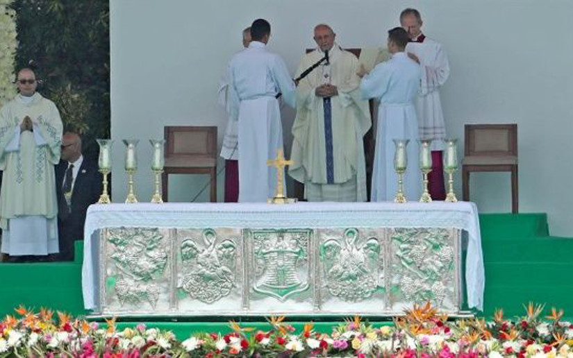Francisco honró la labor del jesuita español Pedro Claver, quien basó su lucha en velar por el sufrimiento de los esclavos de la ciudad colombiana de Cartagena de Indias.