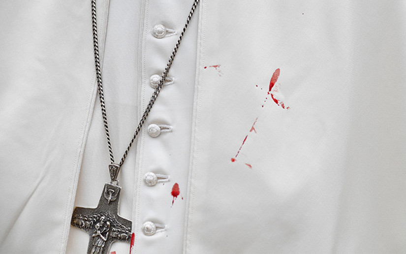 Tras el golpe un par de gotas de sangre mancharon su vestimenta, pero a pesar de ello, no detuvo su recorrido y continuó saludando a los congregados.