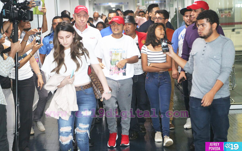 El tetracampeón nicaragüense y nuestro Orgullo Nacional, al momento de bajar del avión, fue recibido con aplausos.