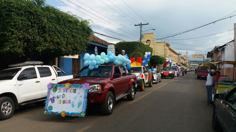 En su recorrido desde la Plaza Pedro Joaquín Chamorro, los servidores de salud mostraron los cuadros de lucha antiepidémica, escuelas de enfermería, lucha contra el VIH y los programas emblemáticos del Buen Gobierno.