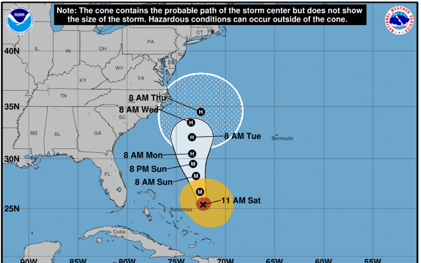 Lee, un “sistema pequeño”, cuyos vientos con fuerza de tormenta tropical se extienden hasta 35 millas (55 km) de su centro, se mueve en dirección norte, pero hoy virará lentamente hacia el noreste y el domingo hacia el este-sureste.