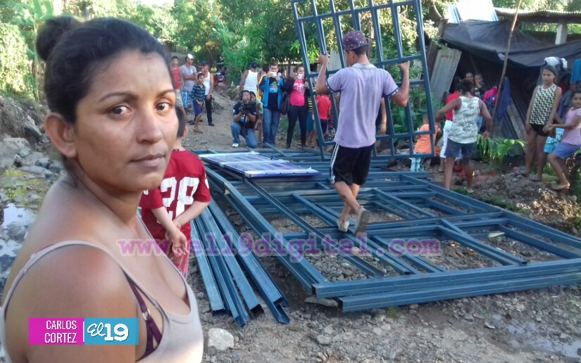 "Este es un cauce natural y la fuerza de la lluvia se llevó el arranque de la vivienda de doña Karen, nosotros inmediatamente hicimos presencia y gracias a Dios y al gobierno del presidente Daniel y la compañera Rosario acá estamos entregando los materiales para que tenga una casa mejor", explicó.