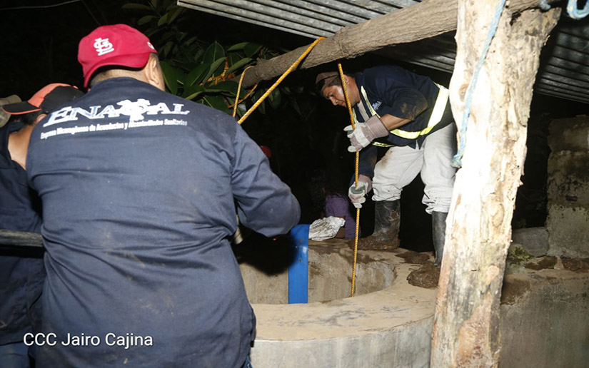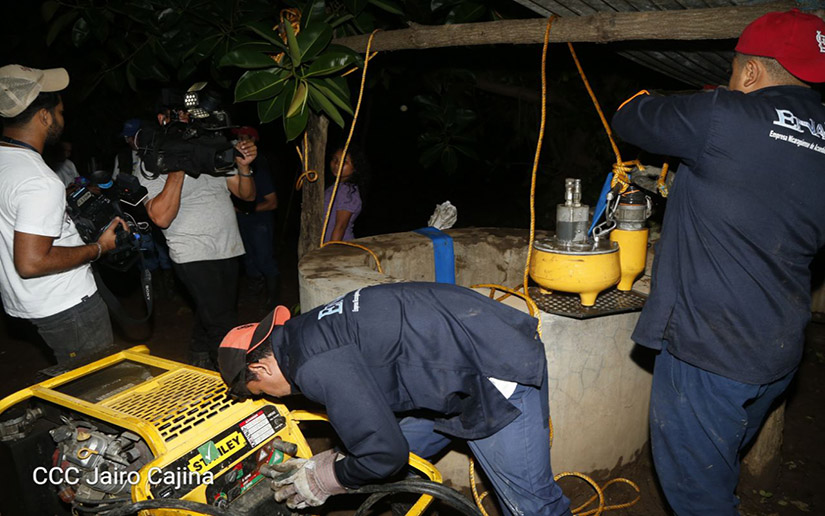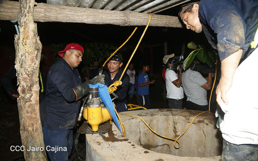 Por mandato del Presidente Daniel Ortega y la Compañera, Vicepresidenta Rosario Murillo, cuadrillas de la Empresa Nicaragüense de Acueductos y Alcantarillados (Enacal), continuaron la noche de este lunes la limpieza y desinfección de pozos, para garantizar que sea apta para el consumo humano.