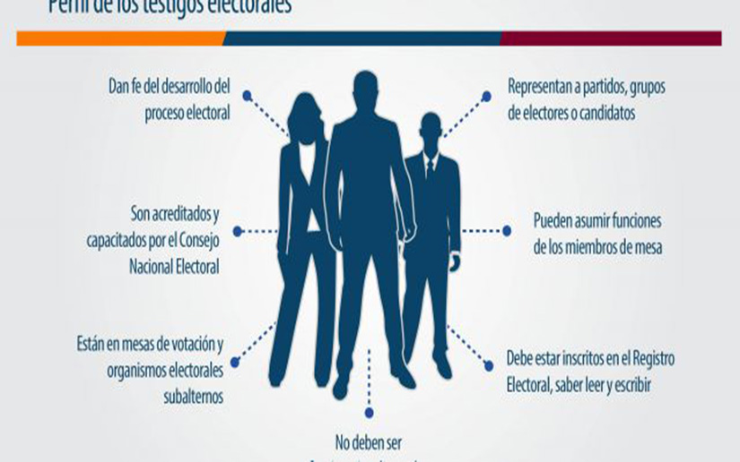 Para ser testigo, los aspirantes deben saber leer y escribir, estar inscritos en el Registro Electoral (RE) y cumplir con el proceso de capacitación que brinda el Consejo Nacional Electoral (CNE).