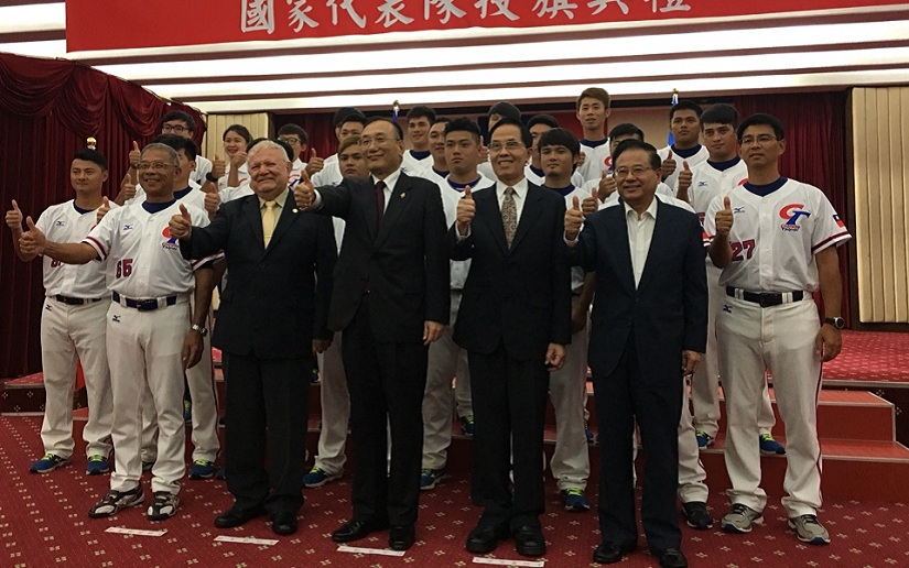El lienzo nacional fue recibido por el dirigente de la Asociacion de Beisbol de Taiwan, quien asistió a la ceremonia acompañado de los directivos y jugadores del conjunto Azul, Rojo y Blanco y expresó estar sumamente agradecido por tener esta dichosa oportunidad de representar a Taiwán en el juego inagural.
