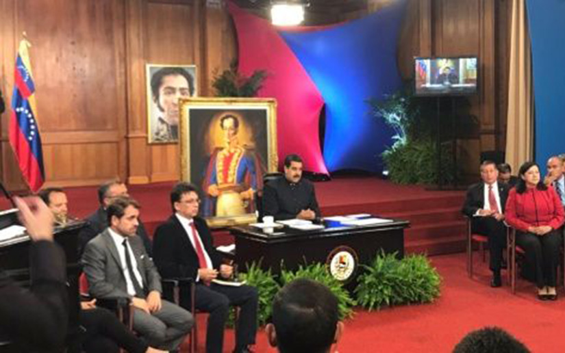 Antes de comparecer ante los medios, Maduro saludó a un grupo de gobernadores electos en los comicios del domingo, en los que se registró un nivel de participación del 61,14% del padrón electoral.