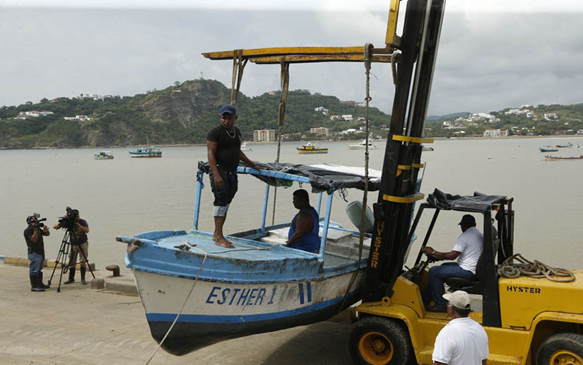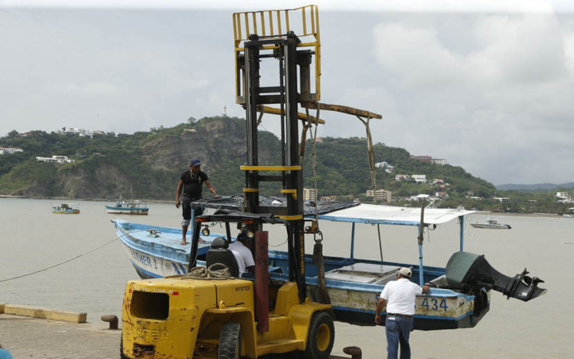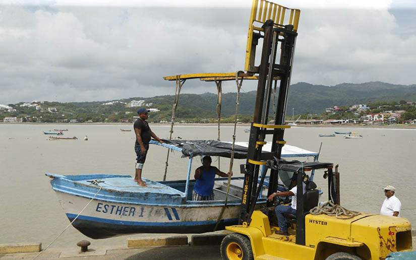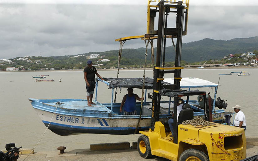 Y mientras tanto la Empresa Portuaria Nacional está colaborando de manera gratuita, con aquellos dueños de lanchas que desean sacar sus embarcaciones de la bahía, para ponerlas a buen resguardo en la terminal pesquera "Shin Komatsu". Una monta carga ayuda a sacar las embarcaciones del agua.