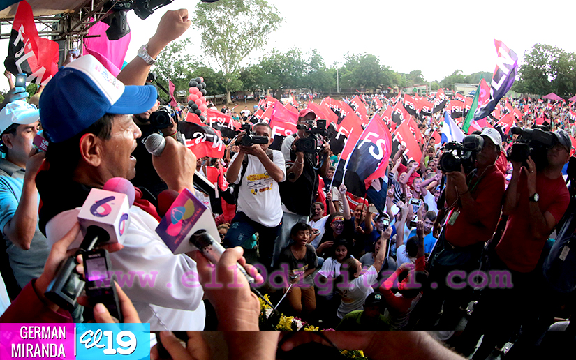 La bandera rojinegra y la azul y blanco cobijaban a los miles de tipitapeños, quienes vivieron una tarde de alegría en el cierre de campaña de este municipio, reiterando su respaldo al candidato a la alcaldía por la Alianza Unida Nicaragua Triunfa del FSLN, César Vásquez y la candidata a Vicealcaldesa, Marbely Aráuz.