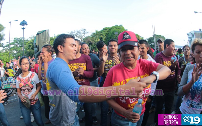 Fue un día de alegría y compromiso por los nuevos tiempos en las que los jóvenes demostraron su talento con bandas rítmicas que tocaron sones nicaragüenses y por su puesto al caer la noche no podía faltar la música y el baile del Grupo Escándalo.