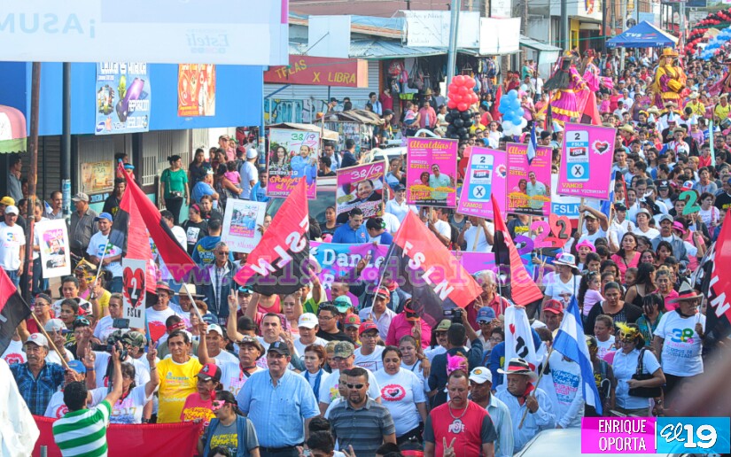 Ondeando las banderas rojinegra, la bandera azul y blanco de nuestra linda Nicaragua junto a las Gigantonas y Enanos Cabezones, parte de nuestras tradiciones, la población de Estelí salió a las calles para celebrar los nuevos tiempos de Paz y Prosperidad que iniciarán nuevamente este 5 de noviembre, día en el que ratificarán su respaldo a la Alcaldía del Frente Sandinista de Liberación Nacional.