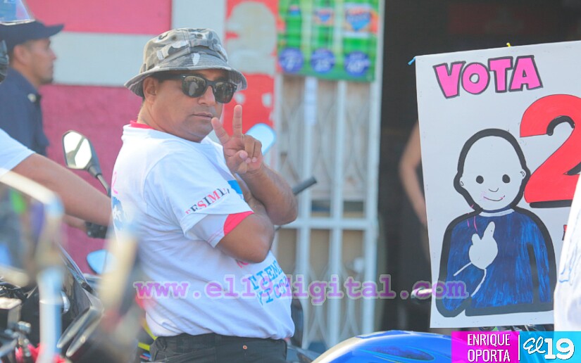 Las explosiones de los morteros anunciaron la entrada de la multitudinaria caravana hacia la tarima en el parque central, entraron en vehículos, los ya famosos motorizados y por su puesto una gran parte de la población caminando acompañadas de su alcalde y candidato, Francisco Valenzuela y la candidata a vice alcaldesa Melania Peralta.
