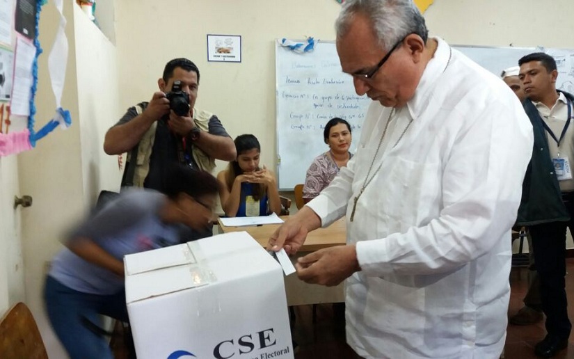 El Obispo de la Diócesis de León, Monseñor Bosco Vivas Róbelo, ejerció su derecho al voto a las 8 de la mañana este 5 de Noviembre, en el Centro de Votación 64, perteneciente a la escuela taller Pepe Escudero, del municipio de León.