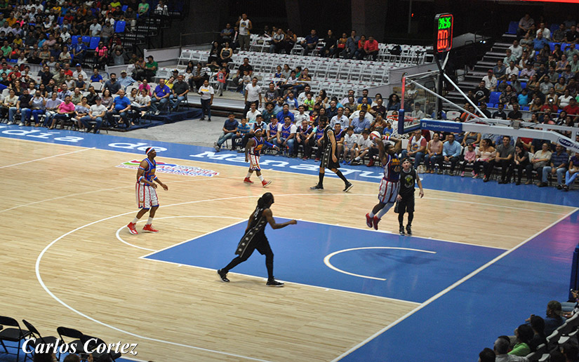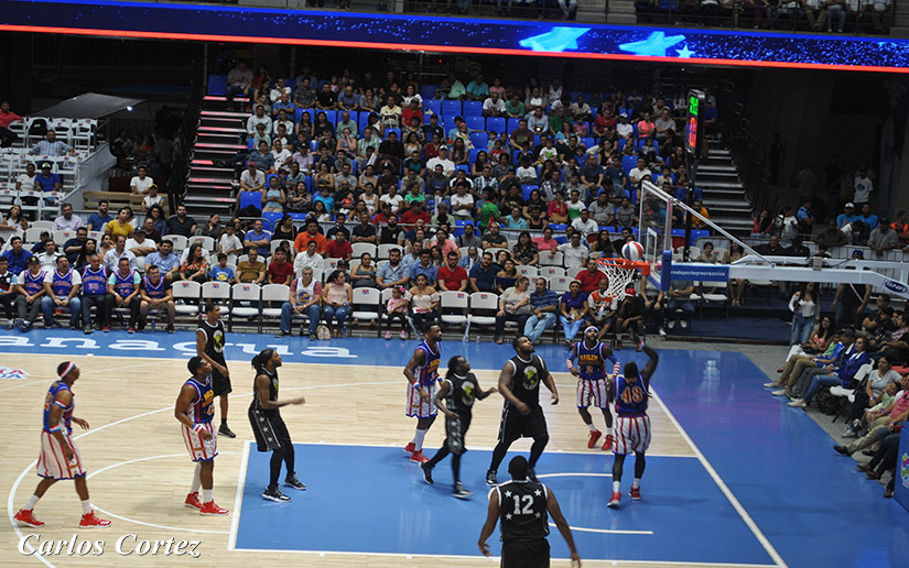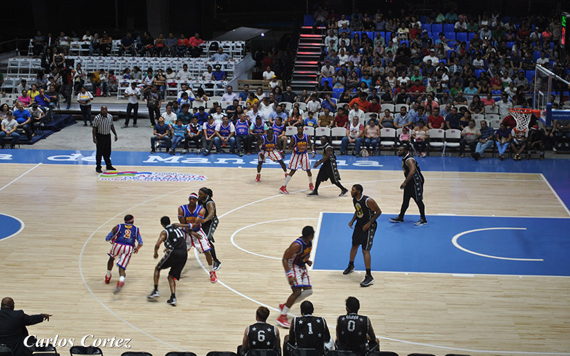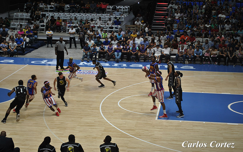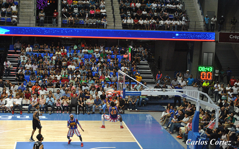 Esa presentación fue la antesala para que los jugadores Trotamundos de Harlem salieran de sus camerinos e hicieran su entrada triunfal, saludando a los asistentes.