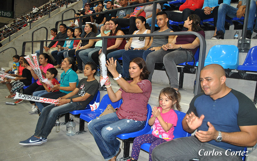 Centenares de nicaragüenses entre jóvenes, adultos y niños se dieron cita a disfrutar de la presentación sobre la cancha reluciente y acompañada de un ambiente de juego de luces y música.