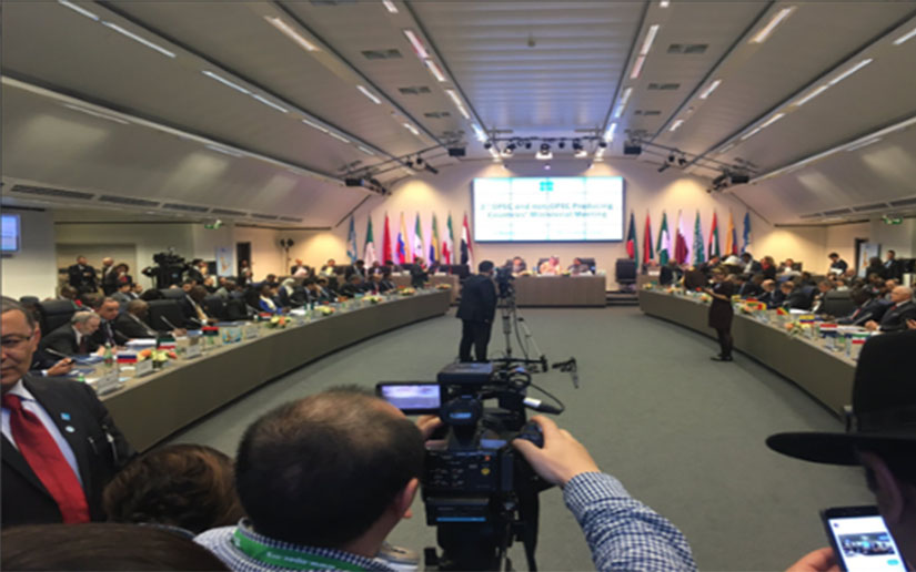 A finales de 2016, la OPEP y 11 productores independientes, Azerbaiyán, Bahréin, Brunéi, Guinea Ecuatorial, Kazajistán, Malasia, México, Omán, Rusia, Sudán y Sudán del Sur, acordaron reducir la producción en 1,8 millones de barriles al día.