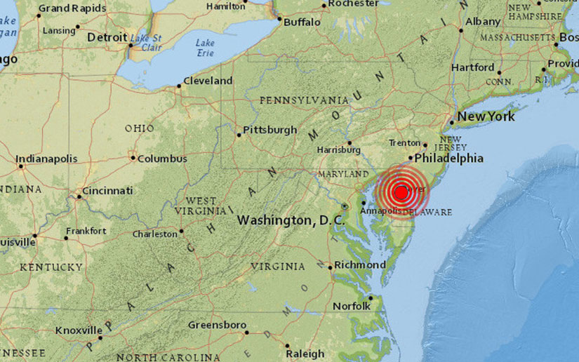 El epicentro del movimiento telúrico se ha localizado a una profundidad de 8,1 kilómetros, a unos 10 kilómetros de la ciudad de Dover, estado de Delaware, si bien se ha dejado sentir desde Nueva York hasta Baltimore.