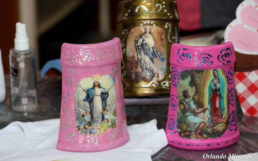 “Busqué como plasmar a La Purísima en teja, y a la gente le ha encantado. Hay gente que adorna el altar o adornan sus casas con estas obras. Trabajo la imagen de la Virgen de Guadalupe, la Virgen del Socorro, la Rosa Mística, incluso la Sangre de Cristo”, refirió.
