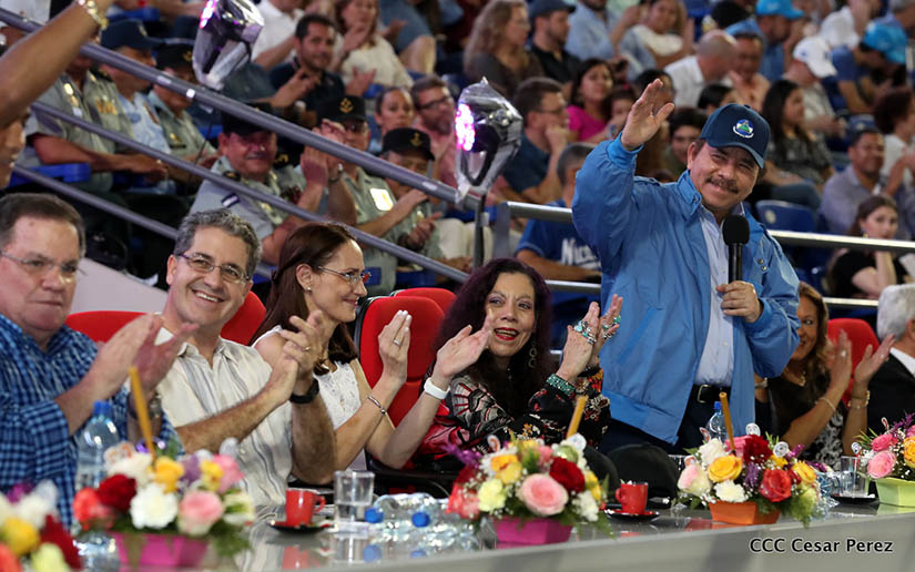 Y quiero concatenar ahí que en aquel momento era el Presidente Daniel Ortega Saavedra, y en aquel momento me tocó a mí ser el Presidente del Comité Olímpico Nicaragüense, e hicimos un gran esfuerzo, y estábamos dispuestos a meternos en la aventura de los Juegos Centroamericanos, no pensando incluso en esta Maravilla que tenemos ahora, que a mí y se lo he hecho saber reiteradas veces, me conmociona. Porque sin el apoyo suyo, y sin el apoyo de Rosario, que ha sido determinante para todos estos que estamos aquí hoy sentados y parados, ¡para que se pueda hacer!