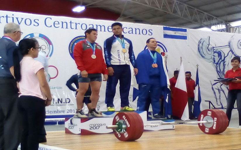 El atleta nicaragüense Francisco Malespín ganó tres medallas de bronce en la categoría 85 kilogramos en levantamiento de pesas arranque, envión y total.