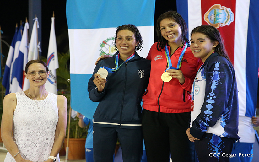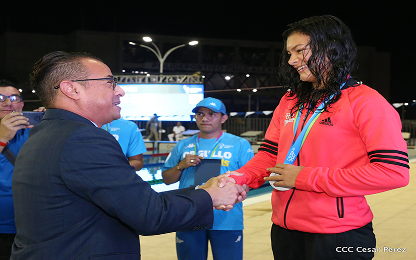 Las medallas fueron entregadas por la nadadora olímpica, Michelle Richardson y el presidente de la Confederación Centroamericana y del Caribe de Natacion (CCCAN), Félix Calderón.