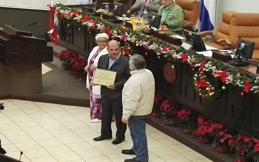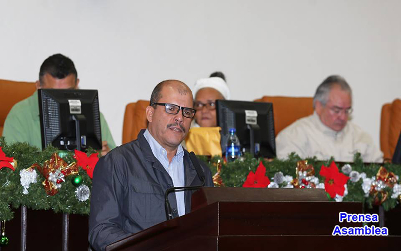La placa de reconocimiento fue entregada por la Junta Directiva del Poder Legislativo al alcalde de la ciudad de Diriamba Fernando Obando.