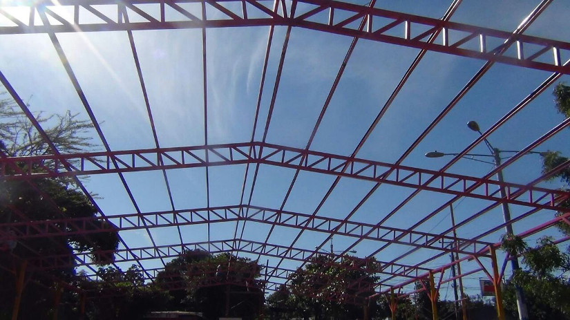 Cortando los perlines, soldando cada milímetro, dando los detalles y remates a los más de cuatrocientos metros cuadrados de construcción del techo de la cancha, es el trabajo que avanza y se tiene como meta entregarlo en la segunda semana del mes de enero de este año.