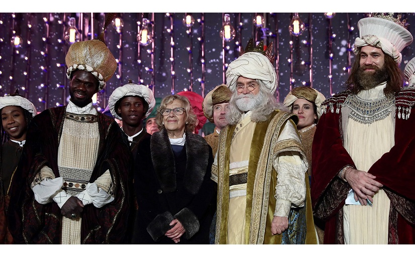 Foto de Portada: Los tres Reyes Magos, Melchor, Gaspar y Baltasar, y la alcaldesa de Madrid, Manuela Carmena, al finalizar la cabalgata de Reyes que ha recorrido el Paseo de La Castellana para finalizar en la Plaza de Cibeles, en Madrid, España. (EFE)