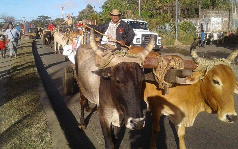 Más de 50 carretas peregrinas originarias de las comunidades de Diriamba ingresaron al centro de la ciudad, hasta la enramada del mayordomo de las fiestas patronales, cargadas de productos básicos.