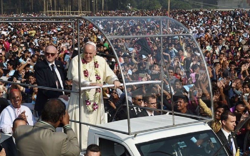 Por motivos atmosféricos, se tuvo que cambiar el protocolo de los viajes en los que la primera cita del pontífice era con el presidente y con las autoridades del país que visita.