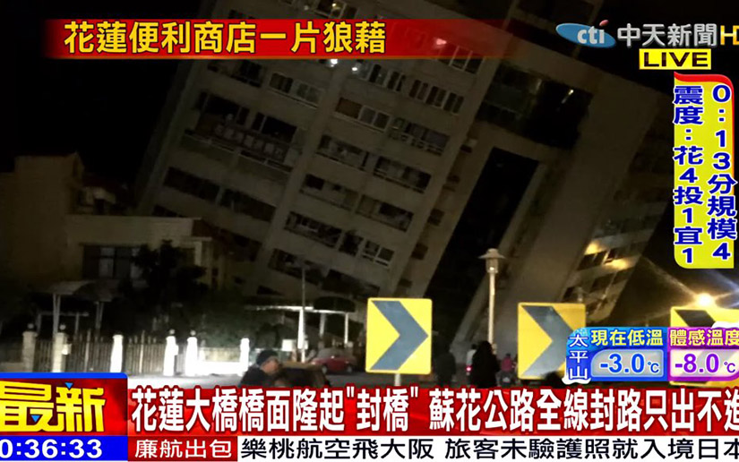 Un sismo magnitud 6.4 ha provocado el derrumbe de un hotel en la región de Hualien, Taiwán.