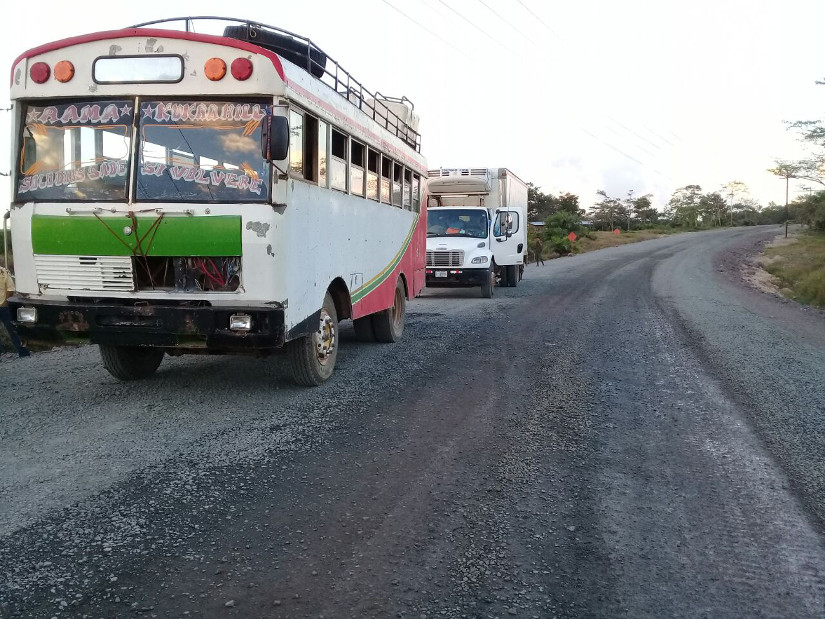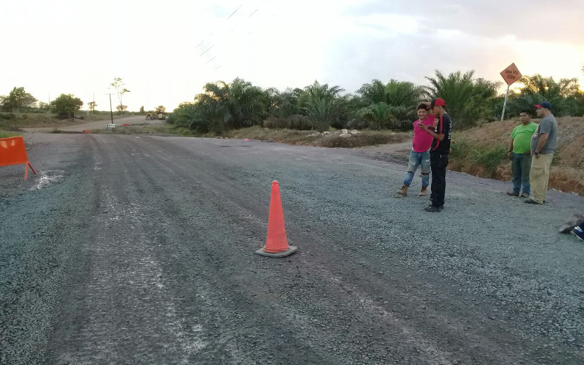 En algunos puntos, el camino tiene el material selecto compactado y en otros con suelo cemento, a la espera del concreto; los trabajos son realizados por las empresas Santa Fé y MECO, contratados por el Gobierno de Reconciliación y Unidad Nacional.