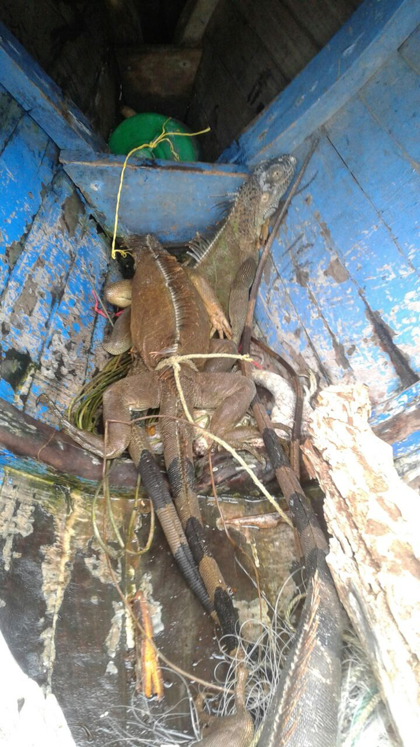 El mismo día, otra patrulla costera del Puesto de Control de Embarcación de San Miguelito ocupó una embarcación artesanal sin tripulación, con 18 iguanas (1 sin vida).