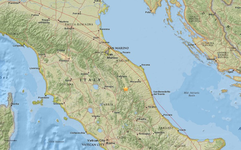 El sismo ocurrió a cinco kilómetros de profundidad a la 05.11 hora local (03.11 GMT) y el epicentro se ubicó unos cinco kilómetros al sur-suroeste de Camerino, una localidad de 10.000 habitantes en la provincia de Macerata, región de las Marcas.