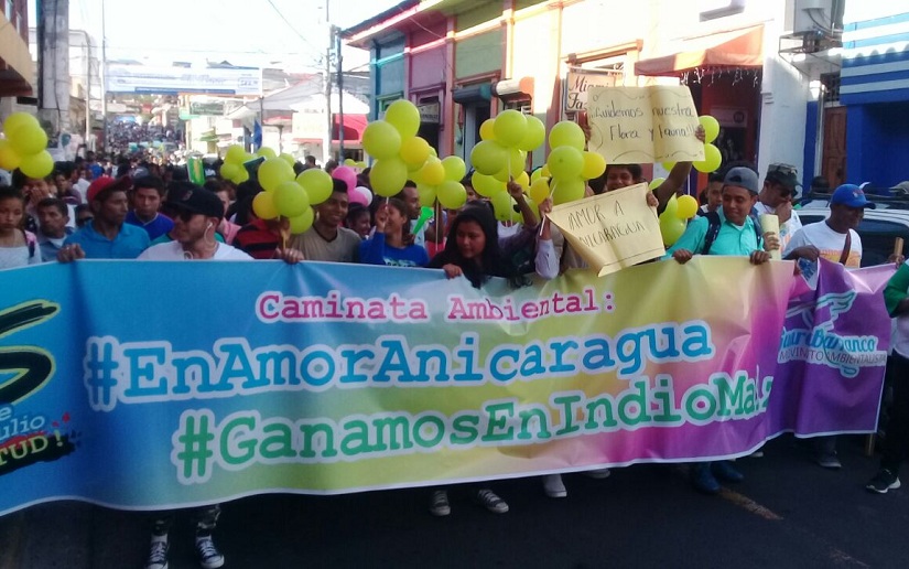 La juventud de Matagalpa se desbordó sobre la calle principal de la ciudad para formar un colorido rio humano en celebración de la extinción del fuego que amenazaba la Reserva de Biosfera Indio Maíz.