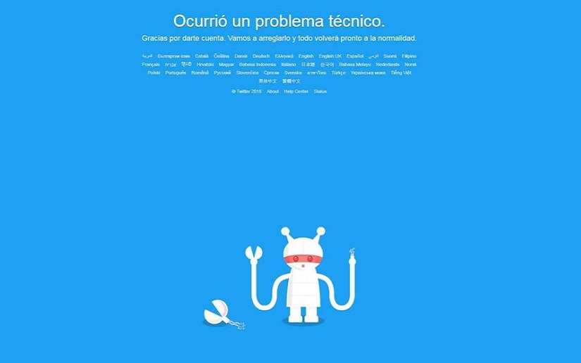 Los internautas que traten de entrar en esta red social verán aparecer una pantalla azul con un mensaje que avisa de la caída. “Ocurrió un problema técnico. Gracias por darte cuenta. Vamos a arreglarlo y pronto volverá a la normalidad”, relata el mensaje de la página principal de Twitter.
