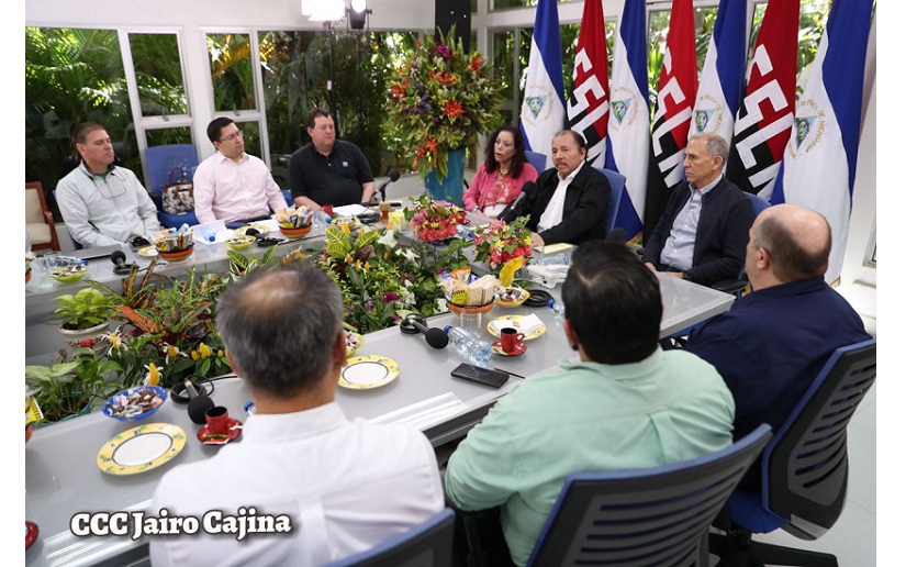 Gracias, Querid@s Amig@s, Representantes de las más grandes Empresas de Zonas Francas. Sabemos que han estado todos reunidos viendo la situación, analizando la situación con el General Baltodano, que él nos traslada y tomamos muy en cuenta sus inquietudes, sus preocupaciones. Y, les decimos que tenemos la Fé en Dios, la Fé en l@s nicaragüenses, la Fé en la responsabilidad de los Dirigentes Económicos, Sociales, Políticos, Religiosos de este País, de que vamos a Salir Adelante. Muchas gracias.